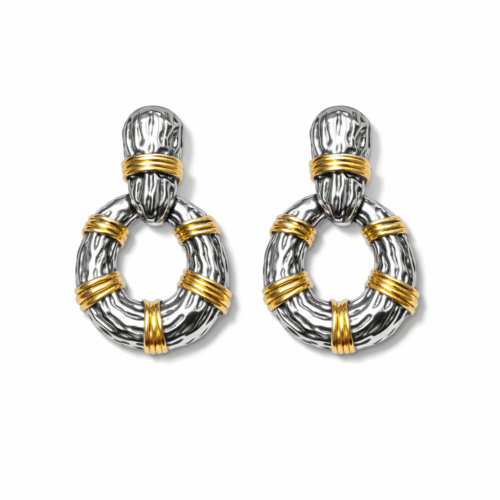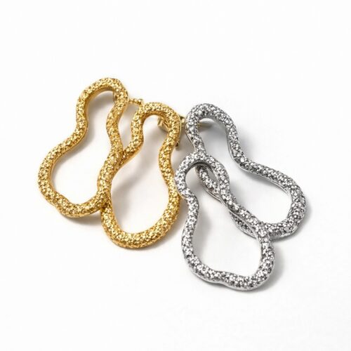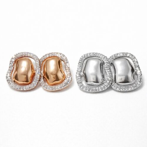 Brinco Luxo Ondulado com Strass – Dourado e Prata