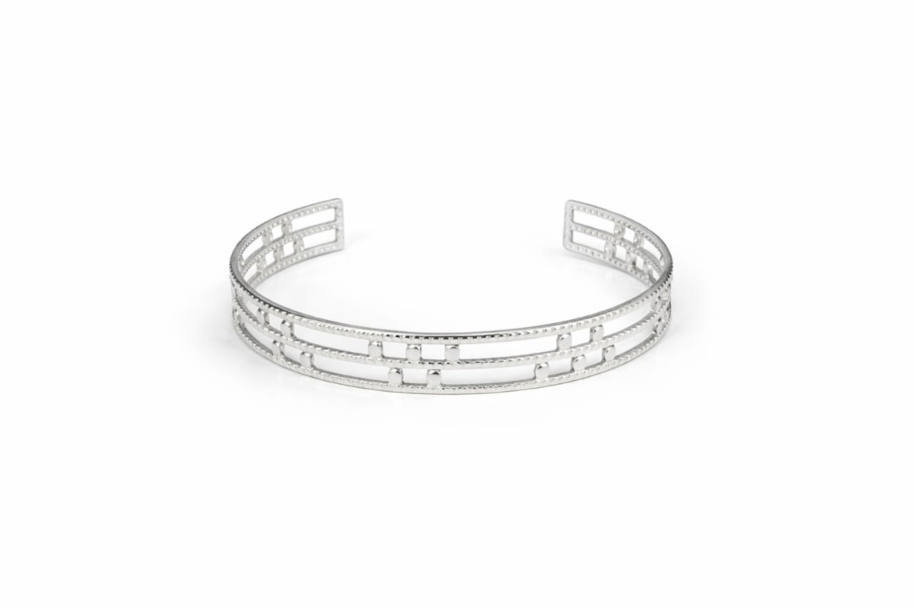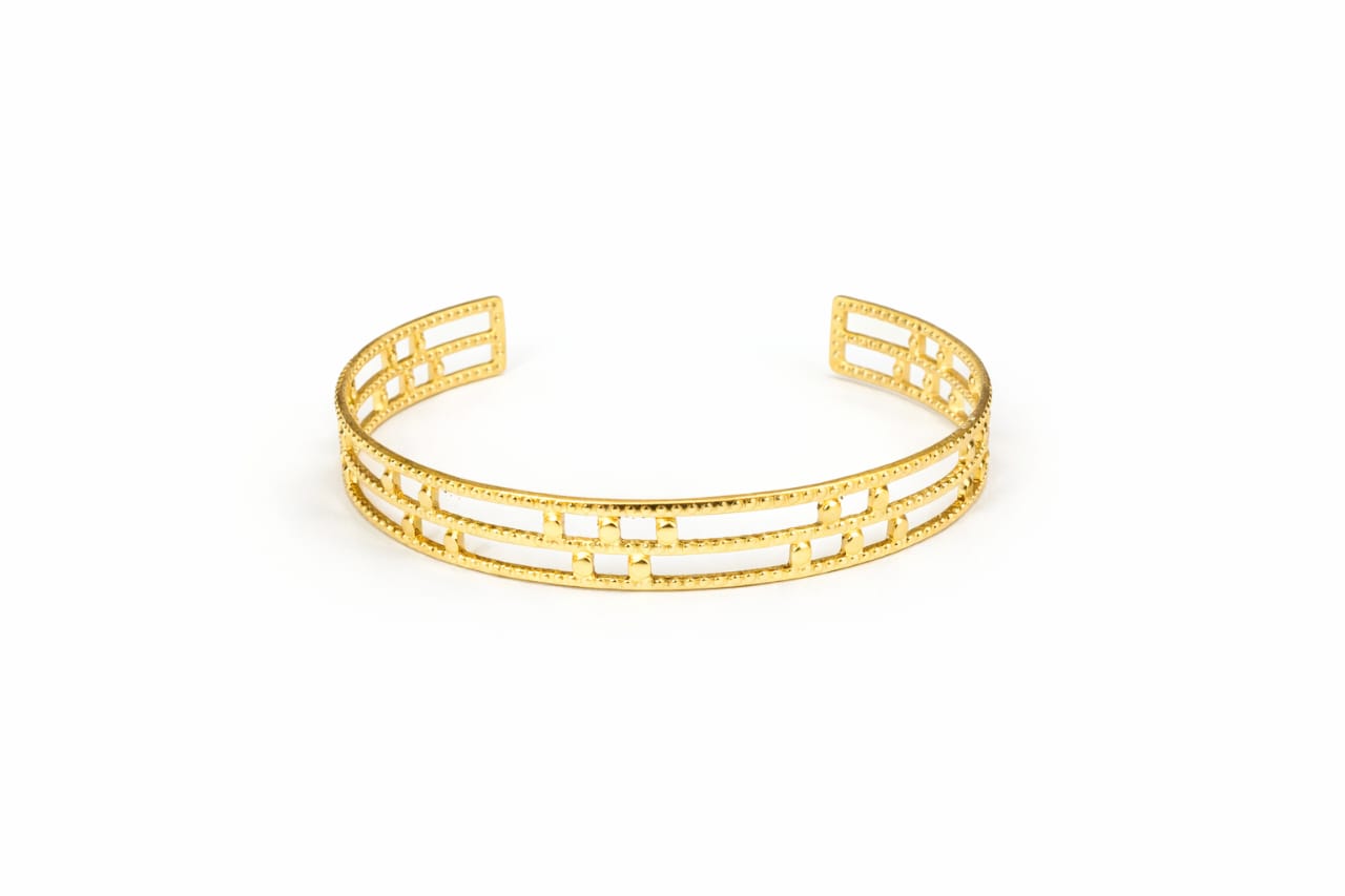 Bracelete sofisticado com design delicado e detalhado, composto por múltiplas linhas com acabamento texturizado que trazem um brilho elegante à peça.