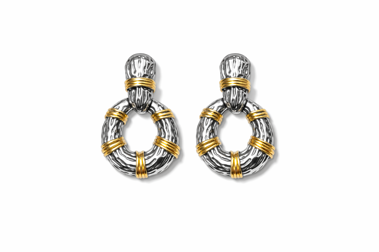 Brinco Argola Texturizada Bicolor