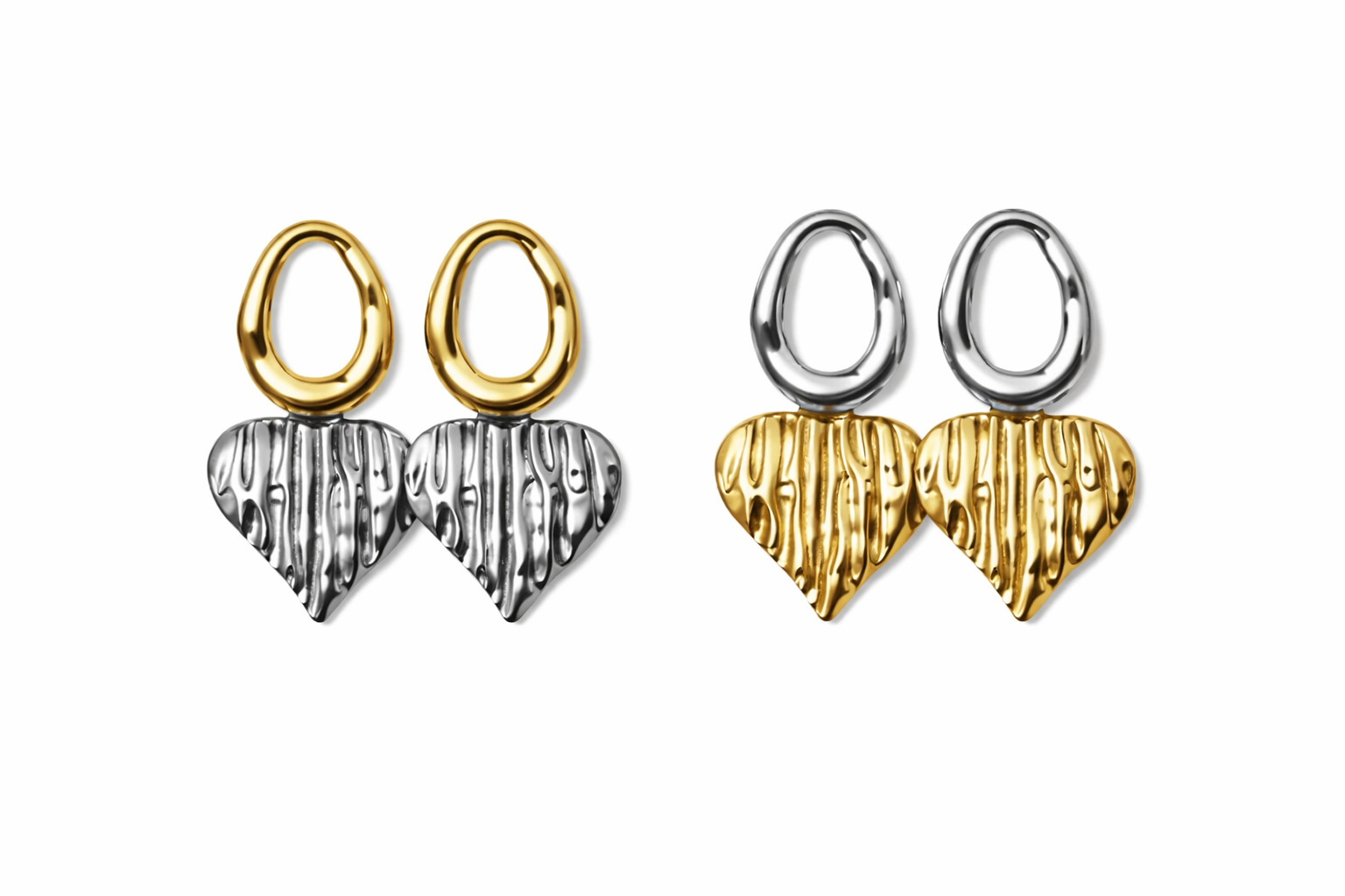 Brinco com design moderno em formato de coração, trazendo um mix sofisticado entre dourado e prata que está super em alta.