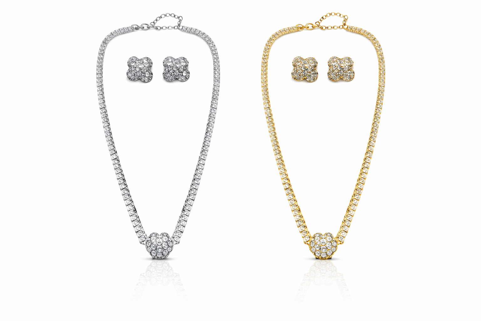 Conjunto Trevo Cravejado (Colar + Brinco)